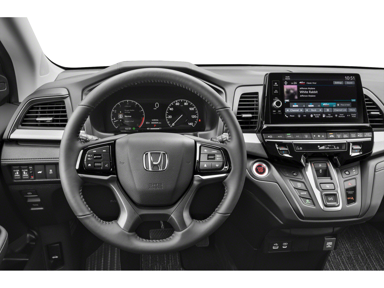 - Radio: 160-Watt AM/FM/HD/SiriusXM Audio System -inc: 7 speakers including subwoofer, 9" color touchscreen display, 7" TFT Meter, Bluetooth® HandsFreeLink, Bluetooth® streaming audio, HondaLink, Speed-Sensitive Volume Compensation (SVC), Radio Data System (RDS), wireless Apple CarPlay compatibility, wireless Android Auto compatibility, 2.5-amp USB smartphone/audio interface, CabinTalk in-car PA system, illuminated steering wheel-mounted controls and fin-type roof-mounted antenna, All SiriusXM services require a subscription, sold separately by SiriusXM after the trial period, If you decide to continue service, the plan you choose will automatically renew at the then-current rates, Fees and taxes apply, See the SiriusXM customer agreement and privacy policy at www.siriusxm.com for full terms and how to cancel, which includes calling 1-866-635-2349, Available in the 48 contiguous U.S, and D.C, Some services and features are subject to device capabilities and location restrictions, All fees, content and features are subject to change, SiriusXM, Pandora and all related logos are trademarks of Sirius XM Radio Inc, and its respective subsidiaries