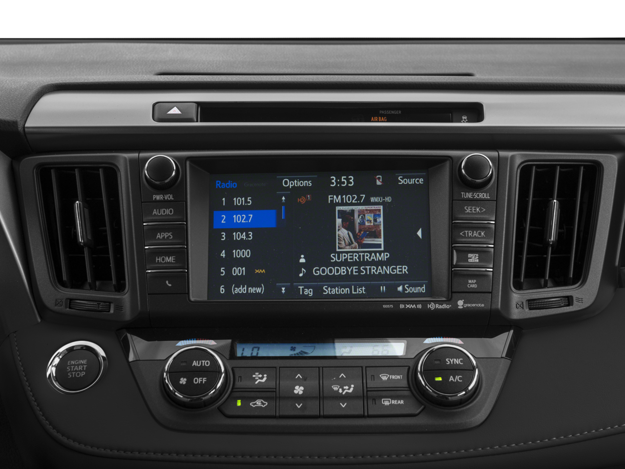 - Radio: Entune Premium Audio with Navigation -inc: AM/FM/MP3/WMA Playback, Entune App Suite, 6 speakers, HD Radio w/iTunes tagging, HD Traffic and Weather, SiriusXM Radio w/90-day trial, 7" touch-screen w/integrated back-up camera display, auxiliary audio jack, USB port w/iPod connectivity and control, vehicle information w/customizable settings, hands-free phone capability, phone book access and music streaming via Bluetooth® wireless technology