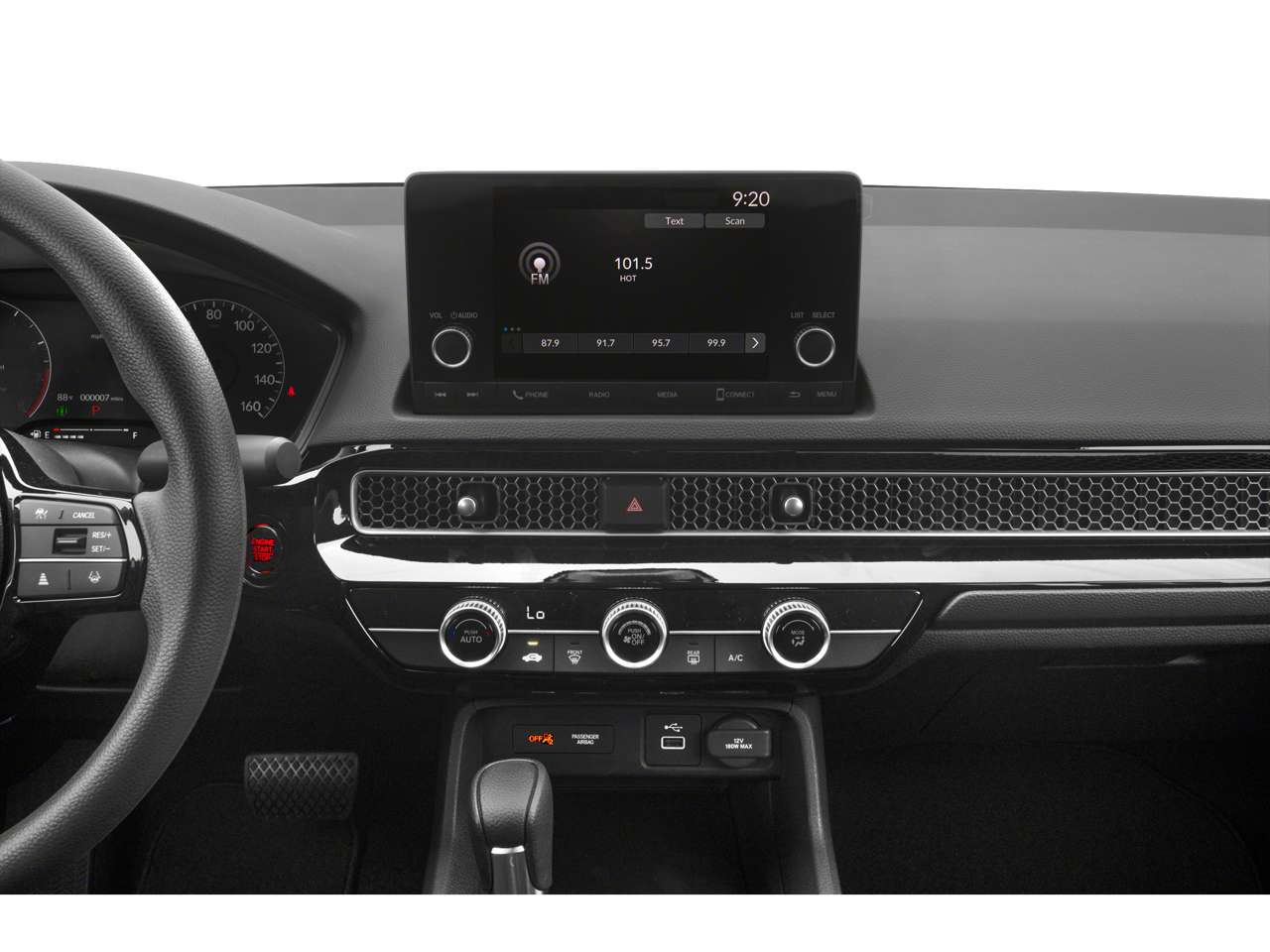 - Radio: 160-Watt Audio System -inc: 4 speakers, 7" color touchscreen, Bluetooth® HandsFreeLink and streaming audio, HondaLink, SMS text message function (Your wireless carrier's rate plans apply, State or local laws may limit use of texting feature.), Speed-Sensitive Volume Compensation (SVC), Radio Data System (RDS), Apple CarPlay and Android Auto compatibility and 2.5-amp USB smartphone/audio interface port in front console