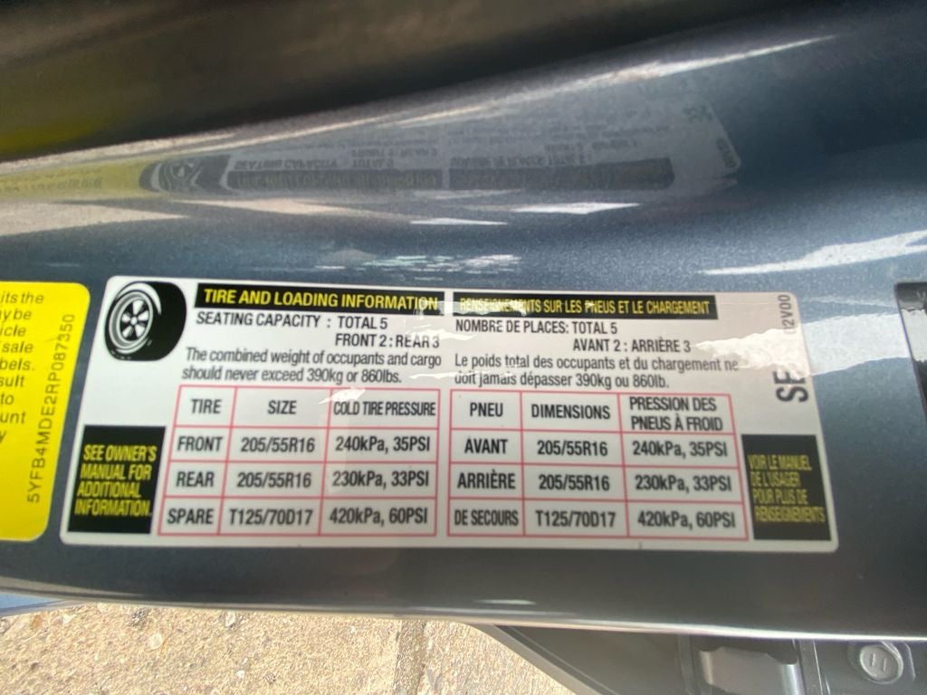 - Front Tire Size: P205/55HR16